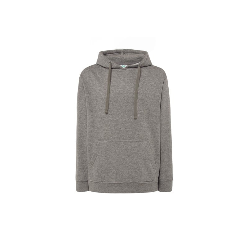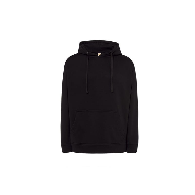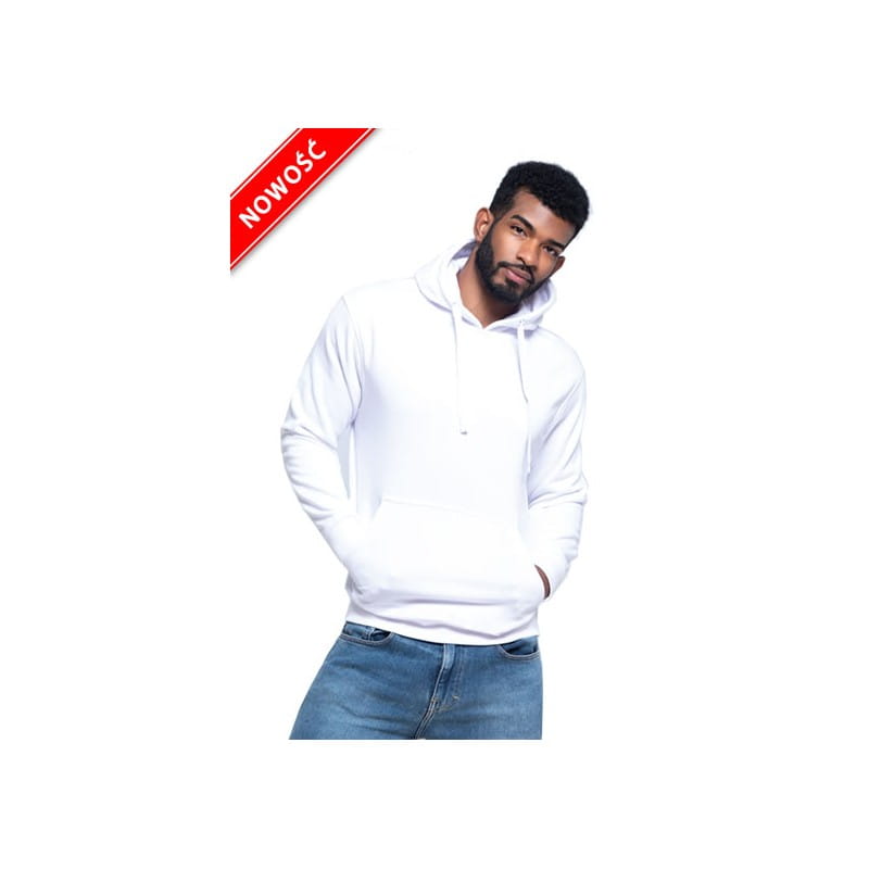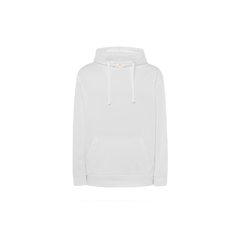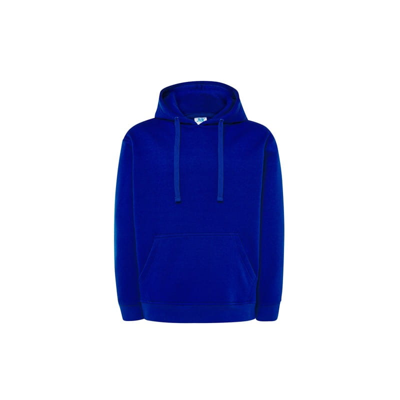 Bluza z kapturem. Naszywane kieszenie. Sznurek ściagający w kapturze w kolorze bluzy. Elastyczne ściągacze prążek 1x1 przy rękawach i dole bluzy. 80% bawełna - 20% poliester.