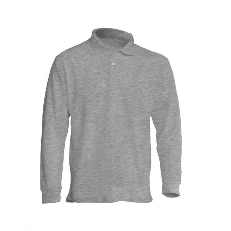 Polo męskie z długim rękawem.Zapinane na dwa guziki. Boczne rozcięcia. Dłuższe na plecach. 100% stabilizowana bawełna czesankowa pique.