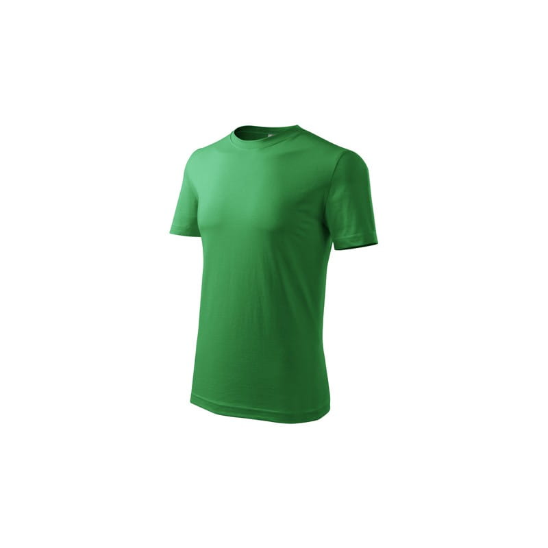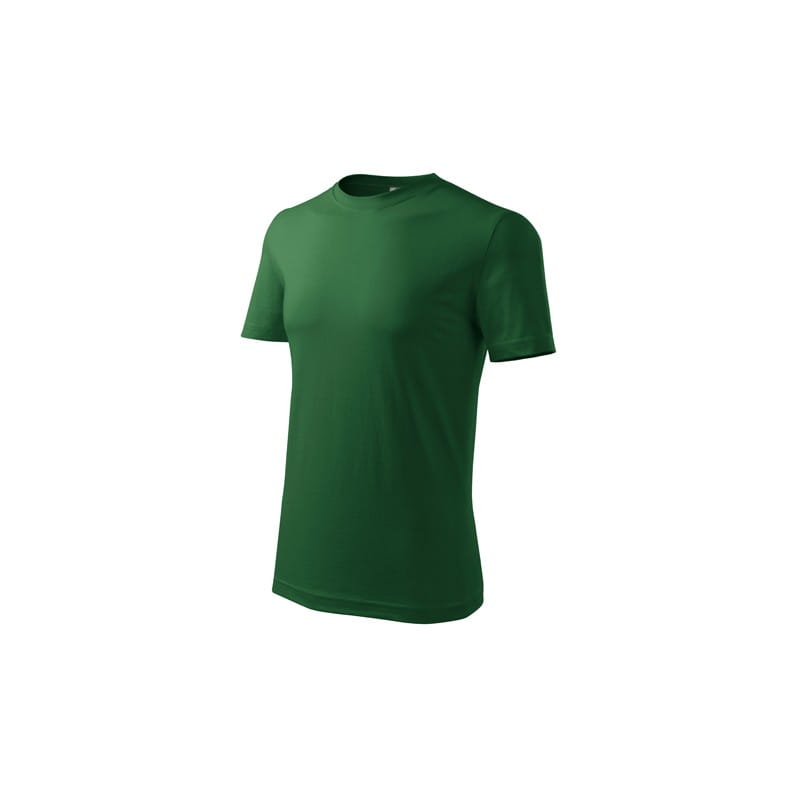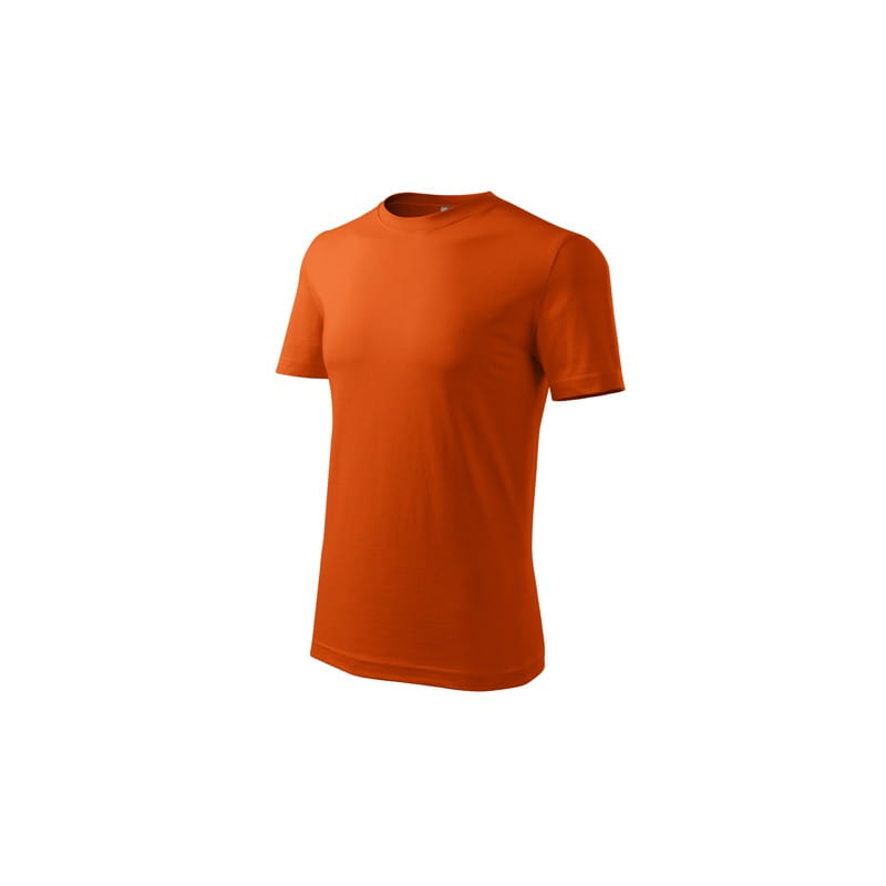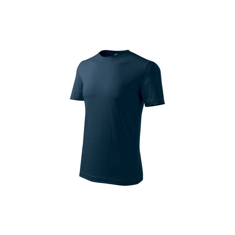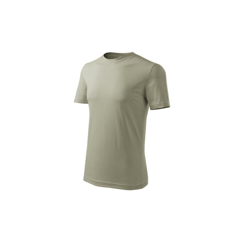 Koszulka męska wysokiej jakości o niższej gramaturze. Wąska lamówka ze splotu żeberkowego. Węwnętrzna tylna część lamówki wykończona tkaną taśmą. Wzmocnienie na ramionach. Bez szwów bocznych. Uzupełnienie damskiego i dziecięcego modelu koszulki Classic New. Świetnie nadaje się pod nadruk.