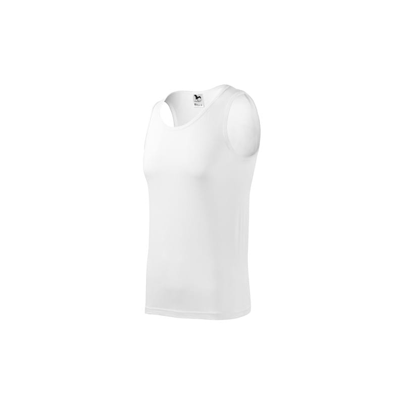 Męski Top o średniej gramaturze. Brak szwów bocznych. Obszycie dekoltu i ramion z tego samego materiału. Szew wzmacniający ramiona. Odpowiednia pod nadruk i haft.