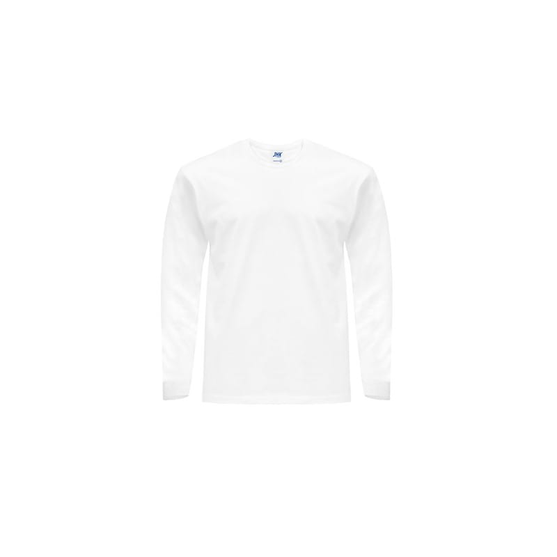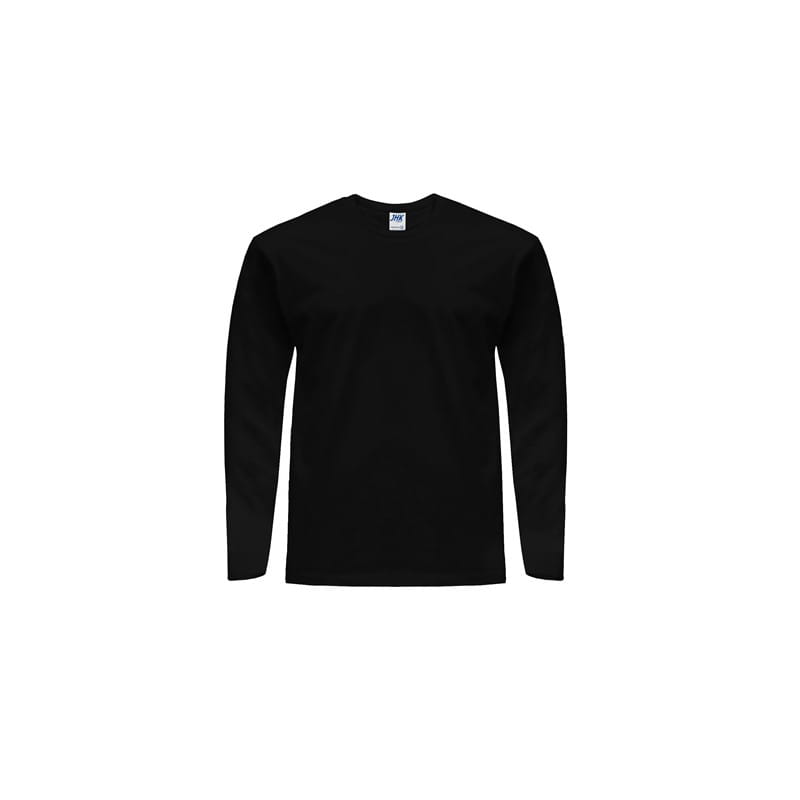 T-shirt męski z długimi rękawami zakończnymi ściągaczem. Brak bocznych szwów. Podwójne szwy na ramionach i spodzie koszulki. Wzmocniony lycrą ściągacz. Taśma wzmacniająca. 100% bawełna stabilizowana.