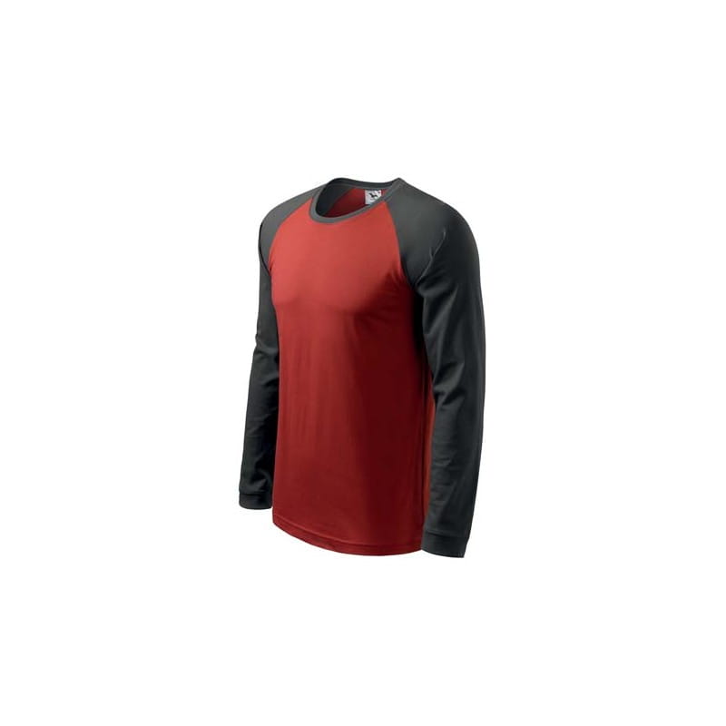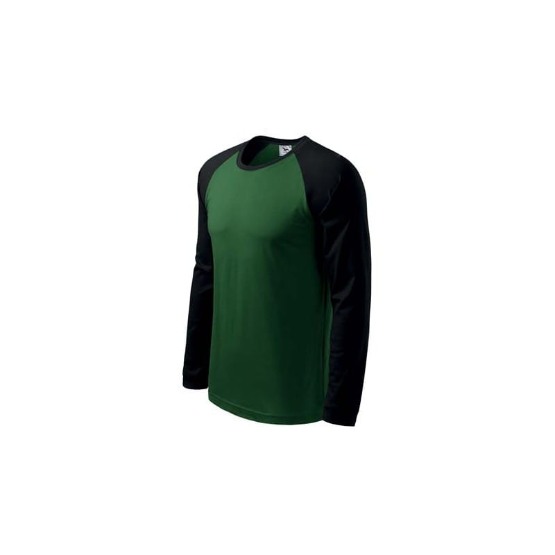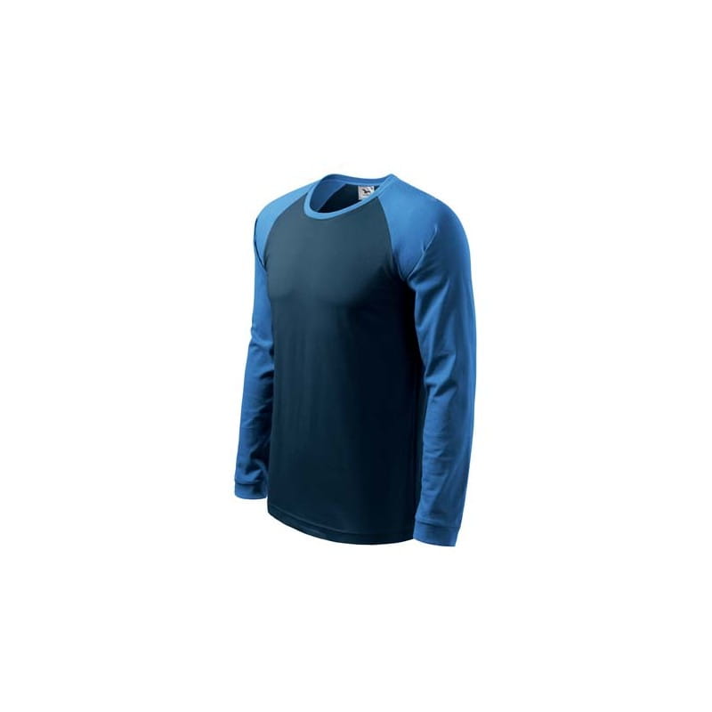 Wysokiej jakości koszulka męska z długim raglanowym rękawem. Modna wąska lamówka prz dekolcie oraz rękawy w kontrastowych kolorach. Lamówka przy dekolcie jest z dodatkiem 5 % elastanu. Krój z bocznymi szwami. Doskonała pod haft i nadruk.