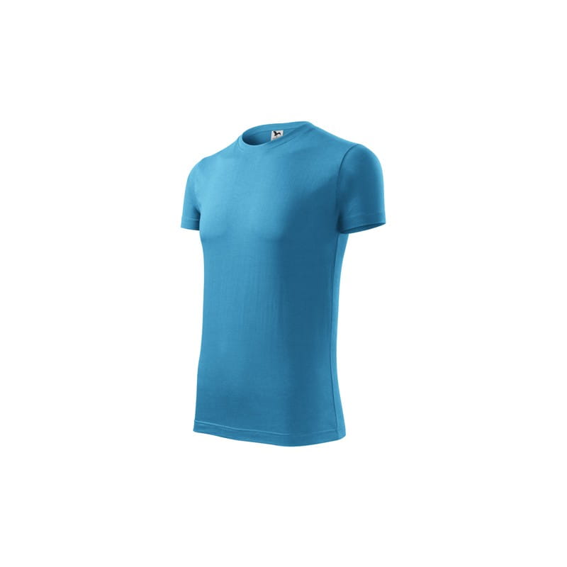 Męska koszulka z krótkim rękawem o wysokiej gramaturze .Modny, dopasowany krój z bocznymi szwami. Dekolt z wąską lamówką ze splotu żeberkowego z dodatkiem 5% elastanu. Wewnętrzna tylna część lamówki wykończona taśmą oraz szew wzmacniający ramiona.