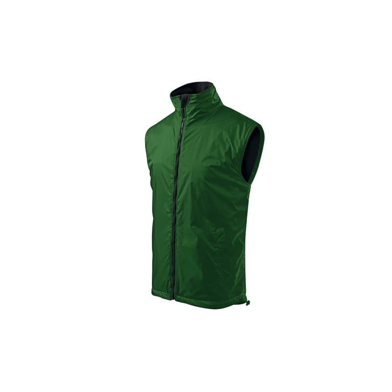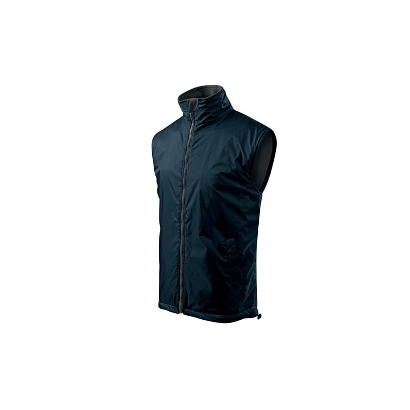 Kamizelka męska. Z przodu dwie wszyte kieszenie, podszewka w kolorze kontrastowym. Zapięcie na zamek błyskawiczny, zakładka z polaru - równocześnie zabezpieczające górny brzeg suwaka, możliwość ściągnięcia dolnego brzegu za pomocą elastycznego sznurka ze stoperem. Dwie kieszenie wewnętrzne (1 mniejsza – na telefon komórkowy, 1 większa), wieszaczek, część tylna przedłużona o 6 cm – lepiej chroni ciało (również w ruchu). Doskonałe pod nadruk i haft, dojście przez otwór na suwak (szew boczny podszewki). Na życzenie klientów została przedłużona długość we wszystkich rozmiarach produktu. Proszę wziąć pod uwagę, że w jednej przesyłce mogą Państwo otrzymać produkty ze starej i nowej kolekcji, co nie może być powodem do złożenia reklamacji.