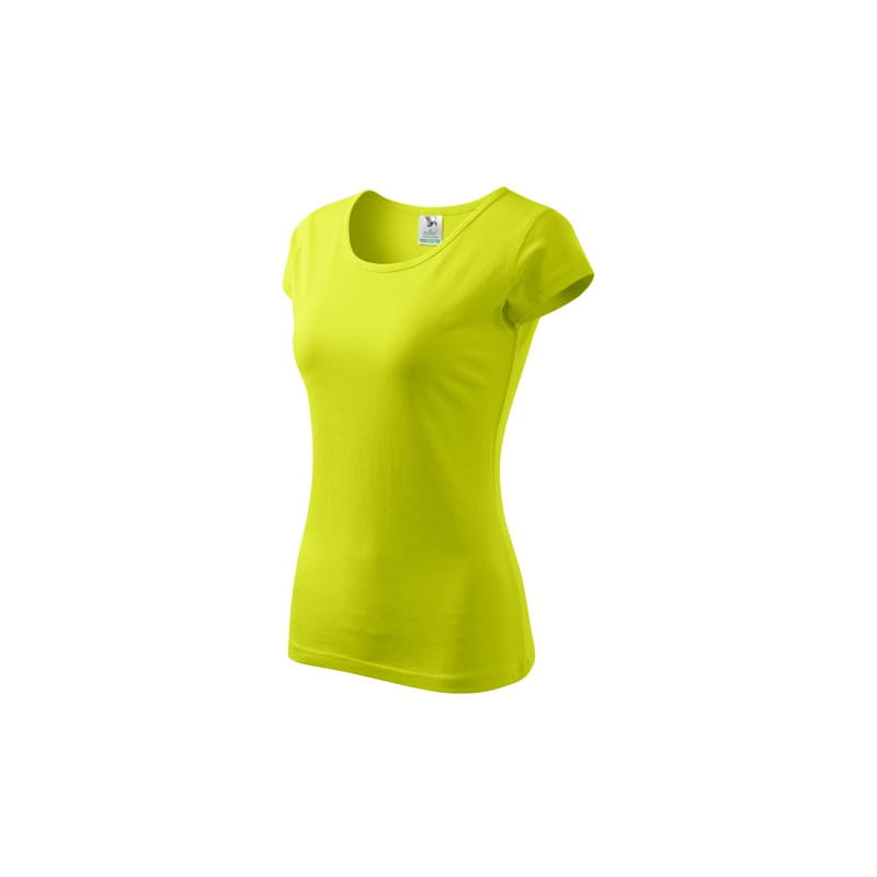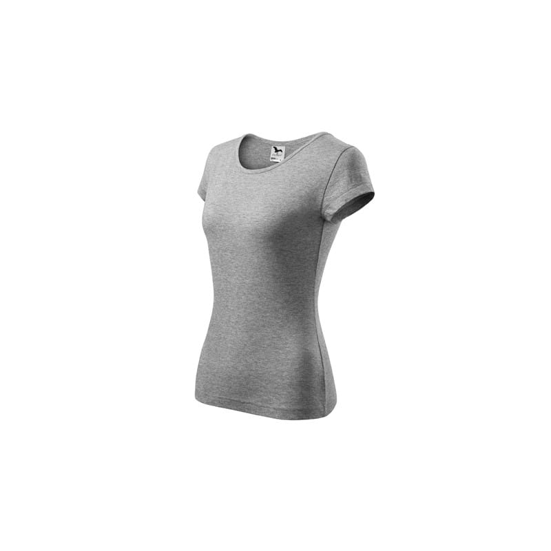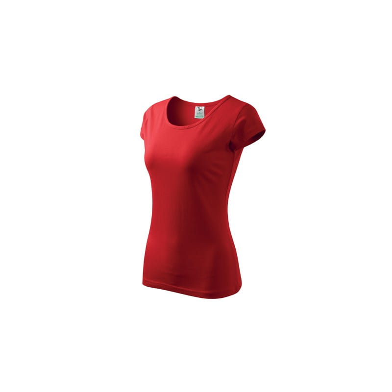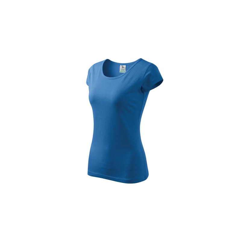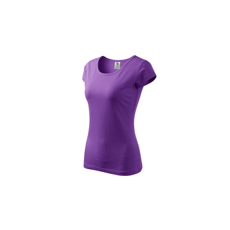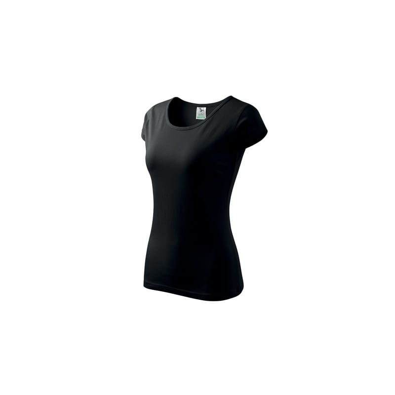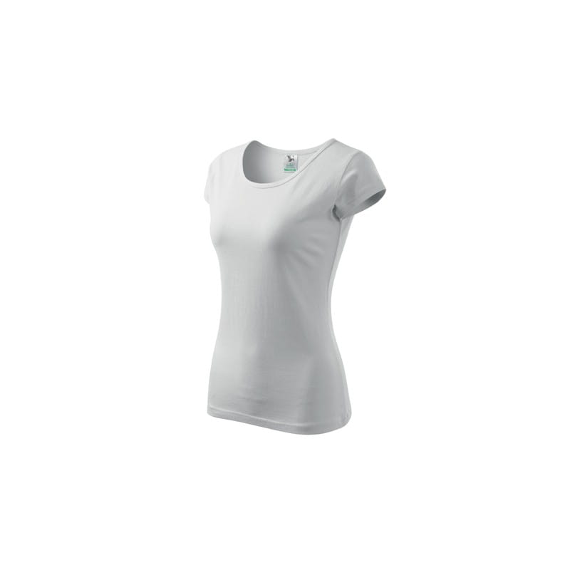 Koszulka damska z bardzo krótkim rękawem. Okrągłe luźne wycięcie z wąską lamówką z tego samego materiału. Ramiona wzmocnione dzięki wszytym paskom. Długość koszulki – do bioder. Dzięki preparatowi zmiękczającemu tkanina jest delikatna i miękka w dotyku.